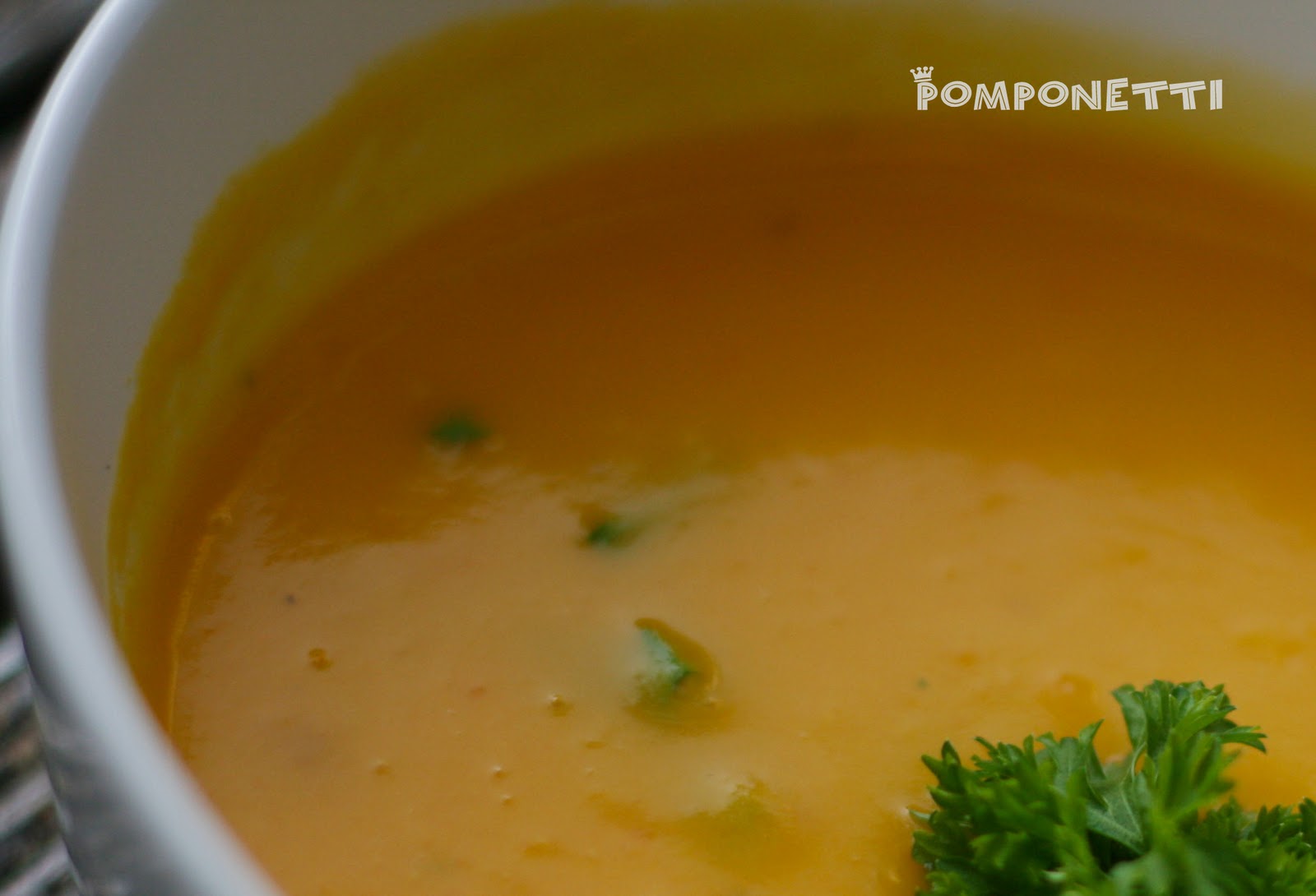 Die Kartoffelwürfel und Karottenstücke in einem Topf mit leicht gesalzenem Wasser knapp bedecken und kochen, nach 1 – 2 Minuten die Kürbiswürfel und den Ingwer zugeben. Zusammen noch ca. 10 Minuten kochen lassen, bis die Kartoffeln und der Kürbis weich sind. Dann mit dem Kochwasser pürieren.