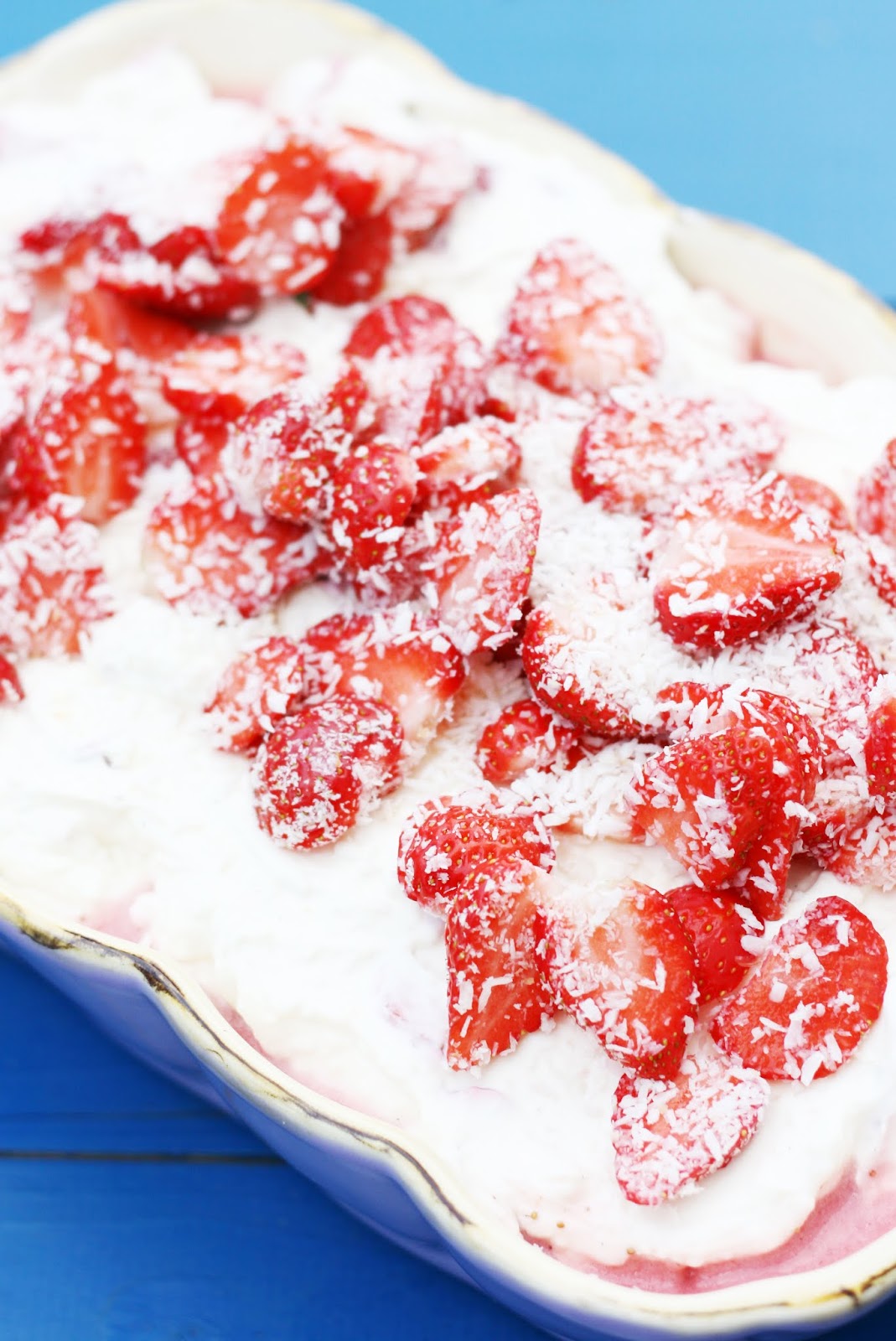 Das sieht richtig lecker aus, habe ich mir vor ein paar Tagen in einer Zeitschrift abfotografiert weil ich es unbedingt mal ausprobieren wollte. Ich liebe Kokos mit Erdbeeren.