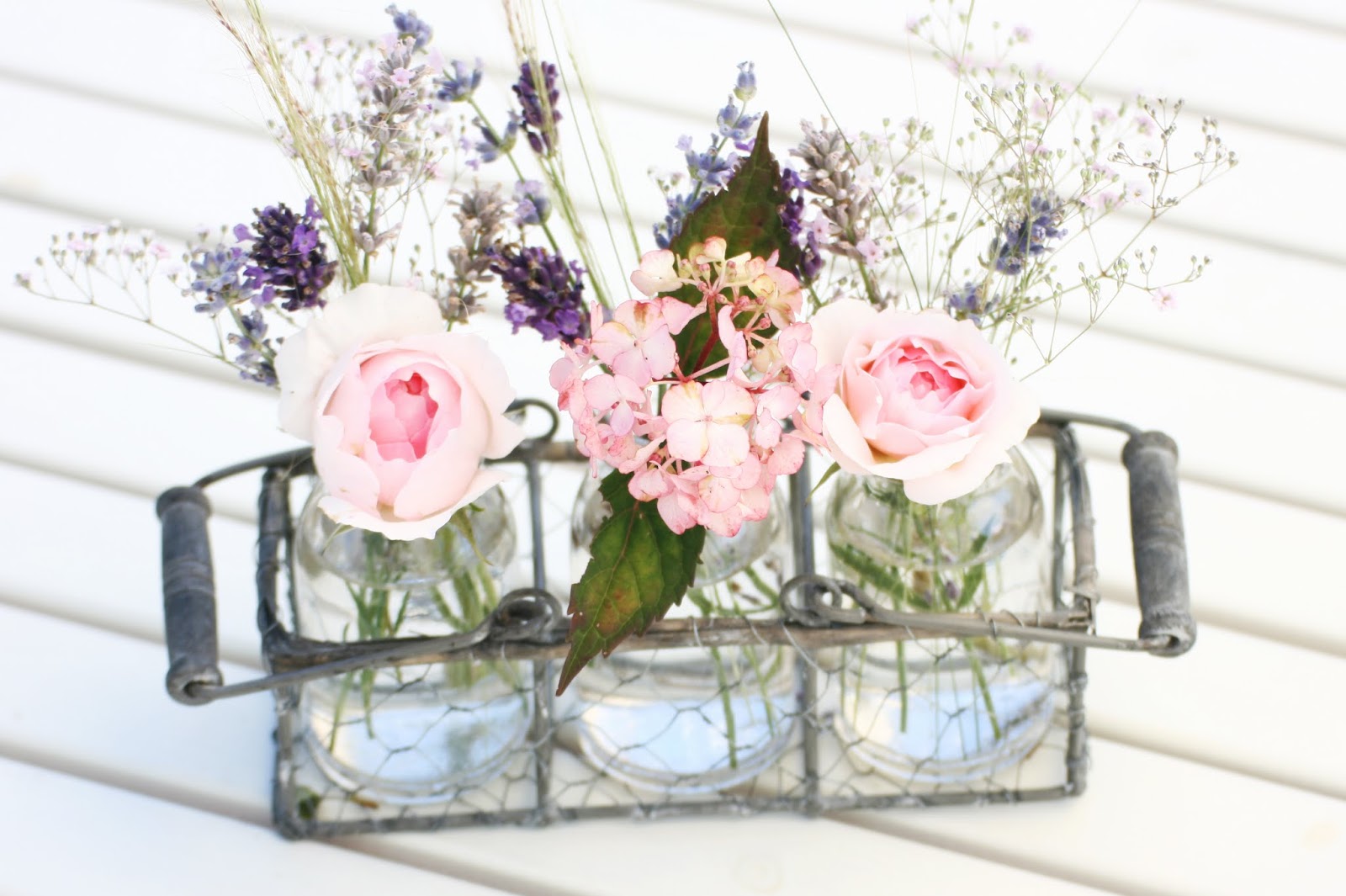 Wedgewood Rose, Hortensie, verschiedene Lavendel und Schleierkraut und Elfengras … ich hoffe es langweilt euch nicht ;)) Ich versuche schon die Rosen abzuwechseln…. aber so liebe ich es einfach! ♥