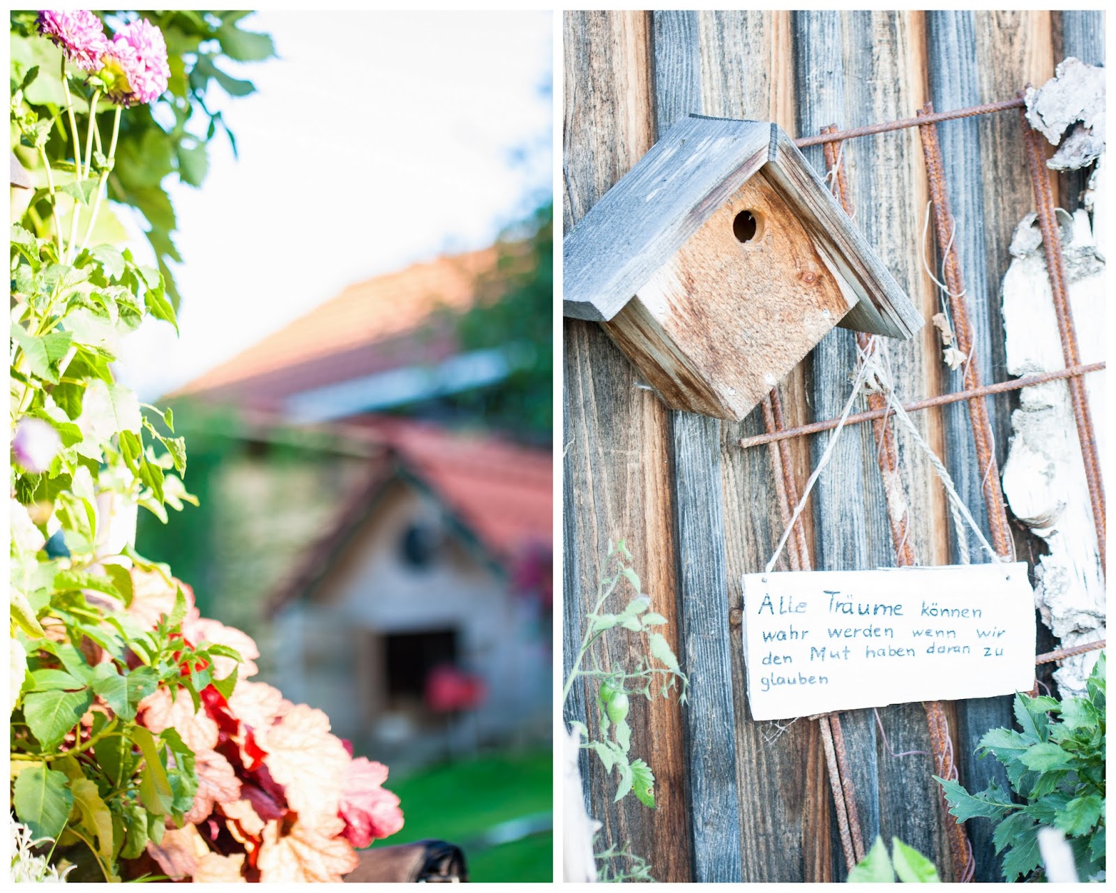 Wie ihr wisst, waren wir gestern im Allgäu. Meine liebe Freundin Andrea hatte Geburtstag und das ist immer einer von ganz wenigen Gelegenheiten sich zu sehen, denn sie hat noch weniger Zeit wie ich. Sie wohnt oben in fast 1000m Höhe, traumhaft gelegen zwischen den Bergen und bewirtschaftet einen Hof mit Ziegen, Schafen, Schweinen, allerlei verschiedenen Hühnern, Gänsen, zwei Pfauen, sowie Hunden und Katzen zur mehr oder weniger Selbstversorgung. Sie stellt selbst den köstlichsten Ziegenkäse her, den ich je gegessen habe…. kurzum sie hat sich dort ein kleines Paradies geschaffen… Habt ihr Lust auf ein paar Impressionen? ♥