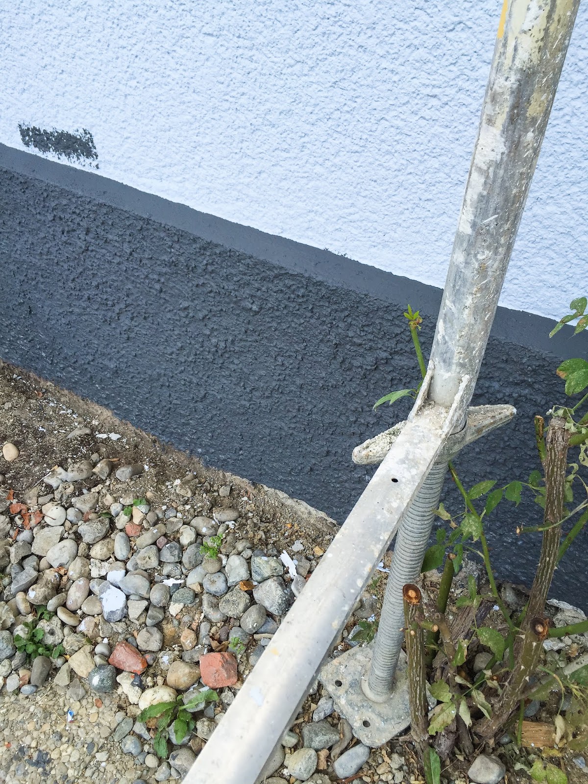 Danach habe ich mit Anja angefangen den Sockel vm Haus zu streichen