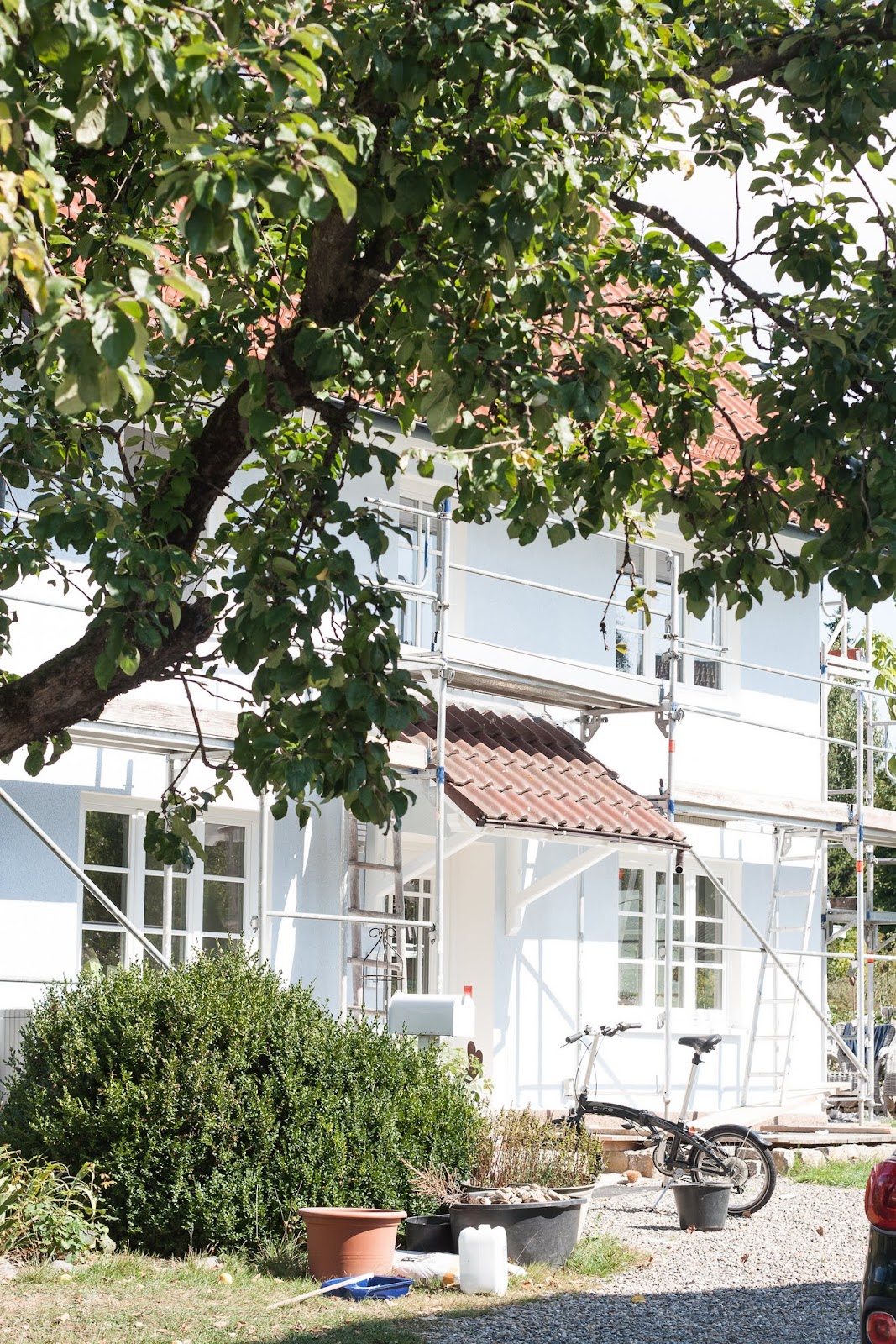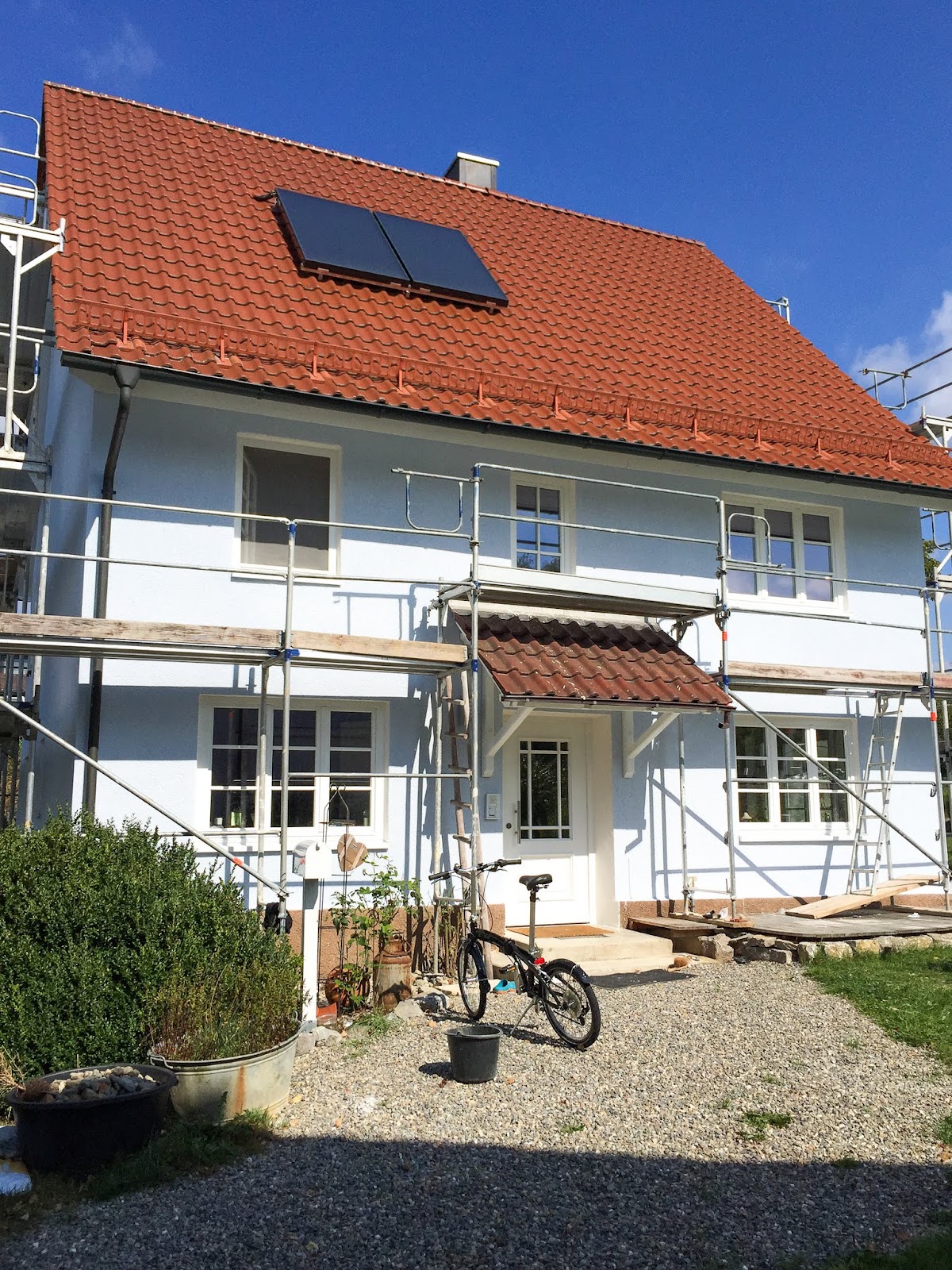 Seit gestern hat der Lieblingsmann nun Urlaub und wir haben 2 Wänder komplett und die Terrassenwand einmal gestrichen…. vielleicht schaffen wir morgen den Rest und dann halt noch der Sockel…… Ich habe es mir ehrlicherweise leichter vorgestellt… das Streichen an sich, aber da dies ein Spezialputz ist ( der ja schon drauf war ) , der noch nie eine Farbe gesehen hat, zudem sehr porös ist, ist das Streichen wahrlich kein Spaß! Dafür ist das Ergebnis toll und ich bekomme mein Schwedenhaus ;)) ♥