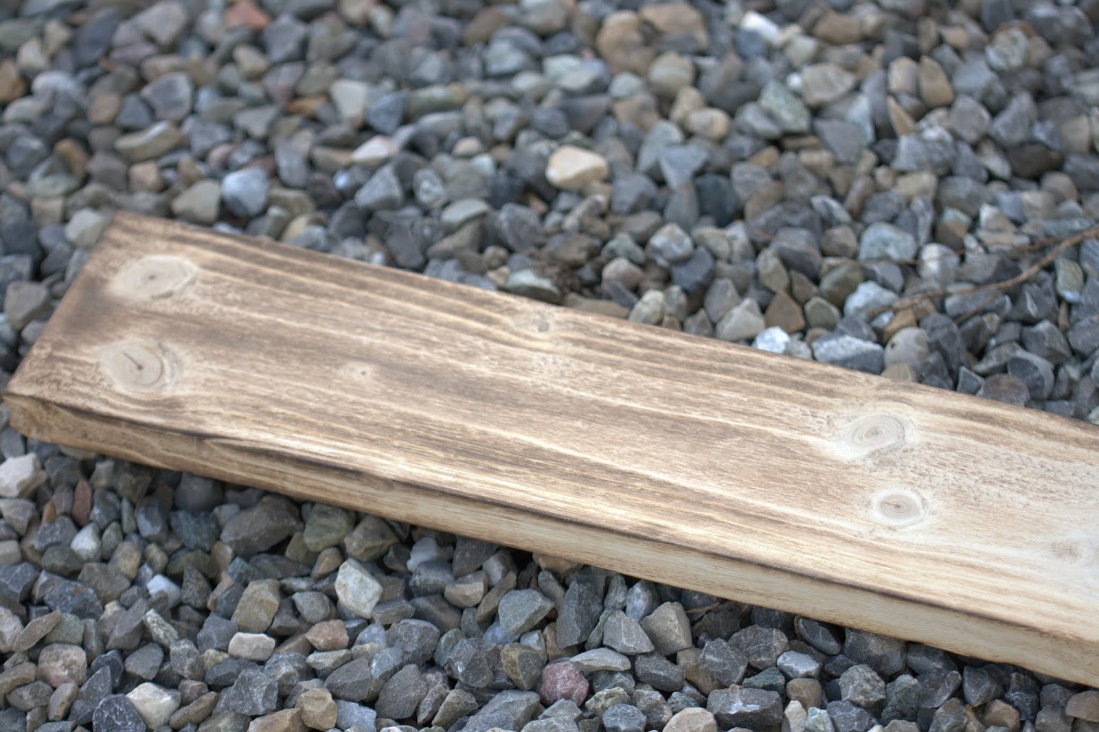 Zuhause habe ich das Holz von Hand angeschliffen, um die groben Späne wegzubekommen. Dann habe ich unseren Unkrautflammer hergeholt und das Brett verbrannt :))