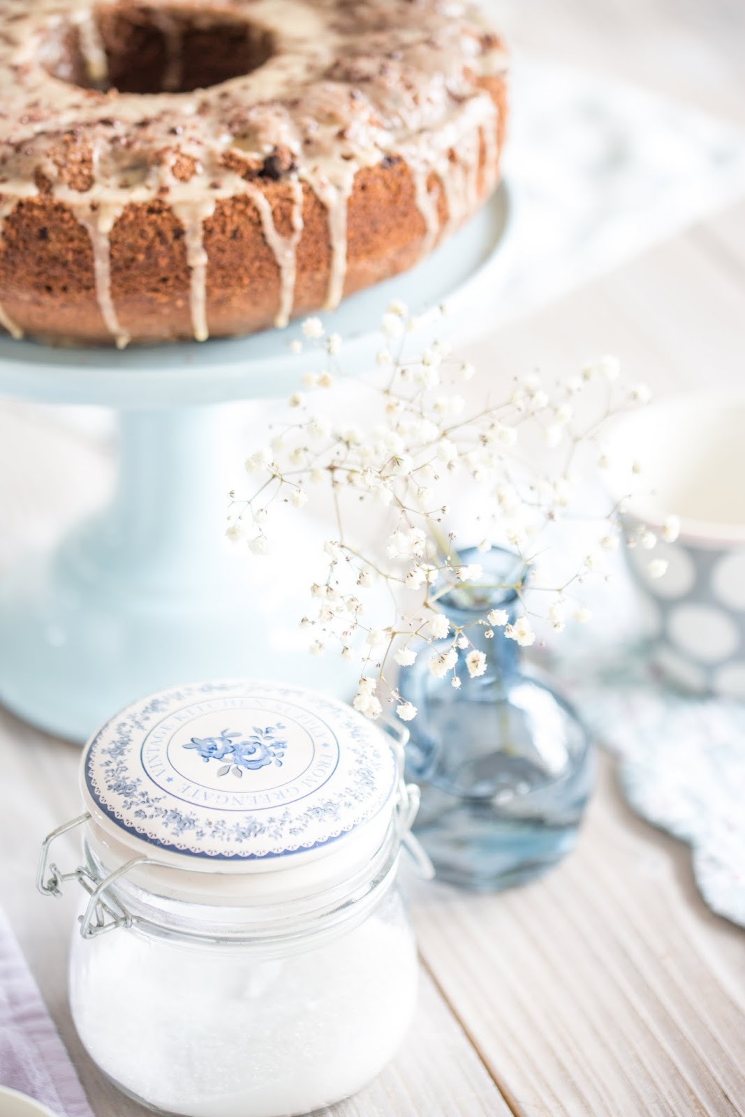 Ihr habt sicher schon bemerkt, dass ich im Moment nicht ohne meine hellblaue Tortenplatte kann…. ich glaube ich muss mir noch eine andere Farbe wünschen, damit ich sie abwechseln kann… in rosa vielleicht ♥ Ich liebe diesen Kuchenständer und er passt ganz wunderbar zu meinen Green Gate Tassen… ♥♥