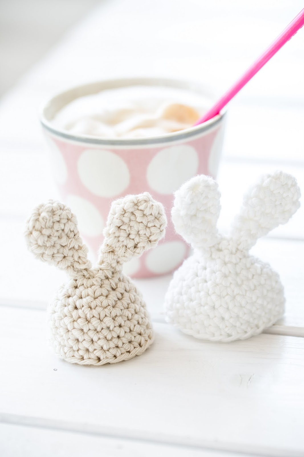 Ich bin gerade voll begeistert! Die gehäkelten Hasenöhrchen für die Eier sind sowas von süß!!!