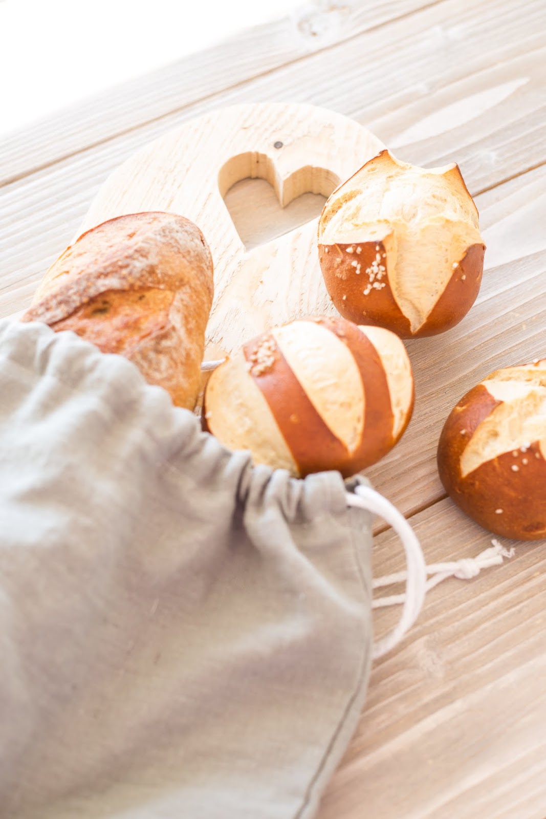 Und wie sieht es mit den Verpackungen beim Bäcker aus? Die sind zwar meistens aus Papier, aber auch damit könnte man sparsamer umgehen….. Ich habe mir nun einen Brotbeutel aus Leinen genäht…. Groß genug um auch ein Baguette oder längeres Brot oder eine Portion Weckchen zu transportieren ♥ Sieht toll aus und lässt sich super mitnehmen. Da müssen noch ein paar her…..