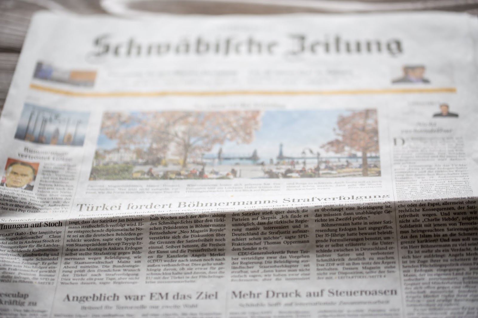 Ein kurzer Blick auf die Zeitung… Staatsaffäre Böhmermann! Meine Meinung? Geht gar nicht!! Hier geht es nicht darum, ob dieser Satirebeitrag gefällt oder nicht, Geschmacksverletzung oder nicht…. Meinungs- Kunst- und Satirefreiheit sind nicht verhandelbar!! Vor gut einem Jahr waren wir alle Chalie Hebdo und jetzt soll dies auf einmal nicht mehr gelten? Schon allein der Gedanke, dass ein Herr Erdogan, nur weil man ein Pakt mit ihm eingegangen ist, als verlängerter Arm des Gesetzes hier in Deutschland dieses Recht auf Meinungsfreiheit anfechten kann, dass man darüber nur diskutiert, lässt mich schaudern……