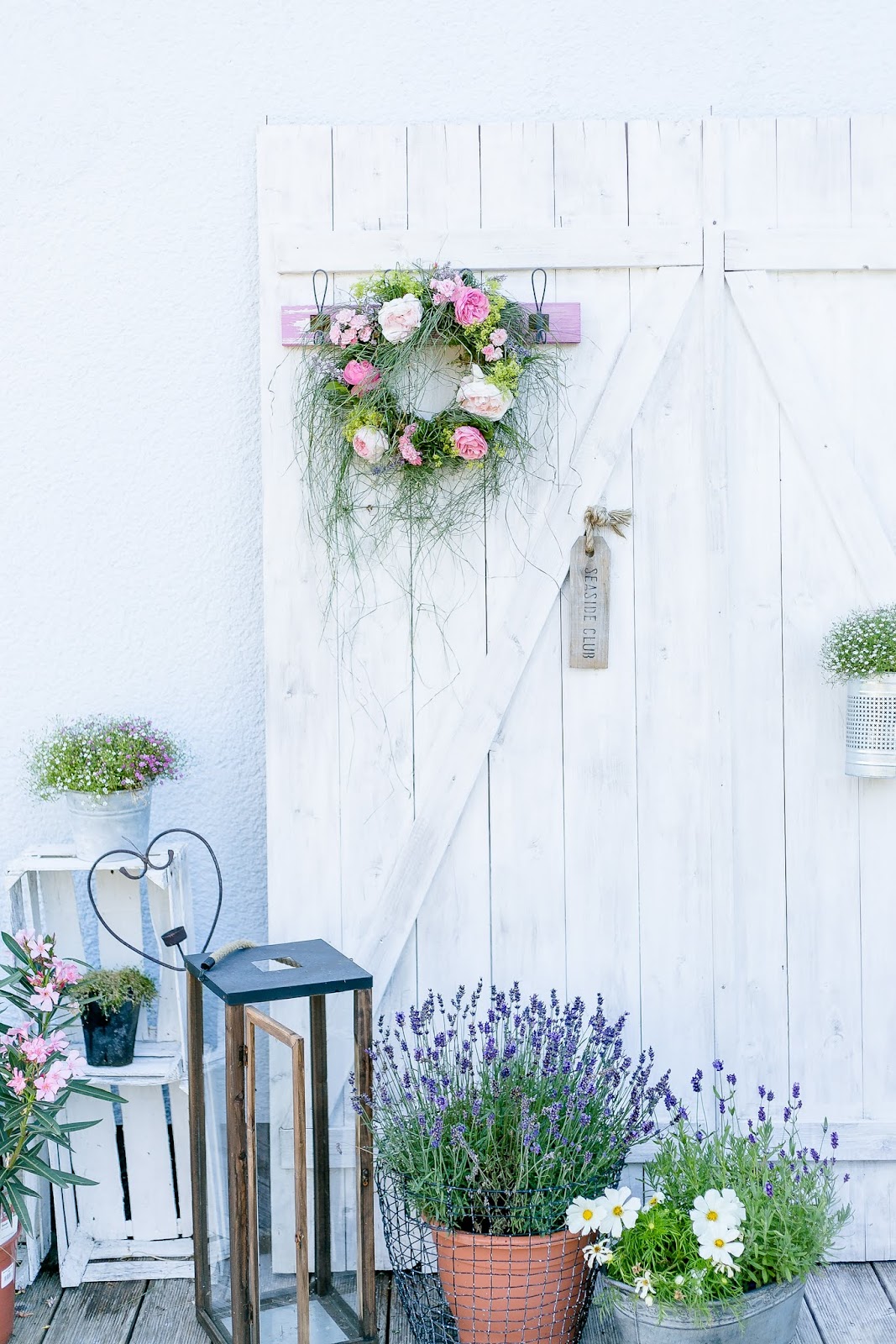……und nicht genug…. heute mittag war ich mit meiner Freundin im Wald und habe etwas Seegras geholt um mir diesen Blumenkranz an meine alte Scheunentüre zu machen….