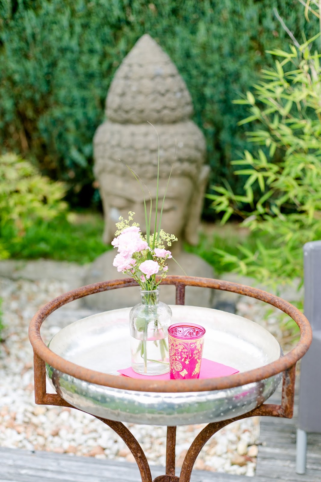 Luci wohnt in einem schnuckeligen Reihenhaus und hat einen noch schnuckeligeren Garten, leicht im asiatischen Stil eingerichtet. Sie hat einen fantastischen Geschmack und liebt es ebenso zu dekorieren, ganz anders wie ich, aber so schön!! ♥