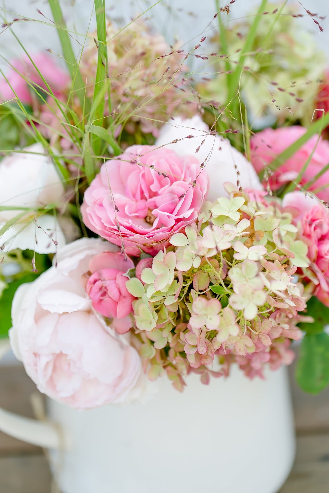 immer schön zart * heute auch mit gräser * schöne rosen und hortensia !