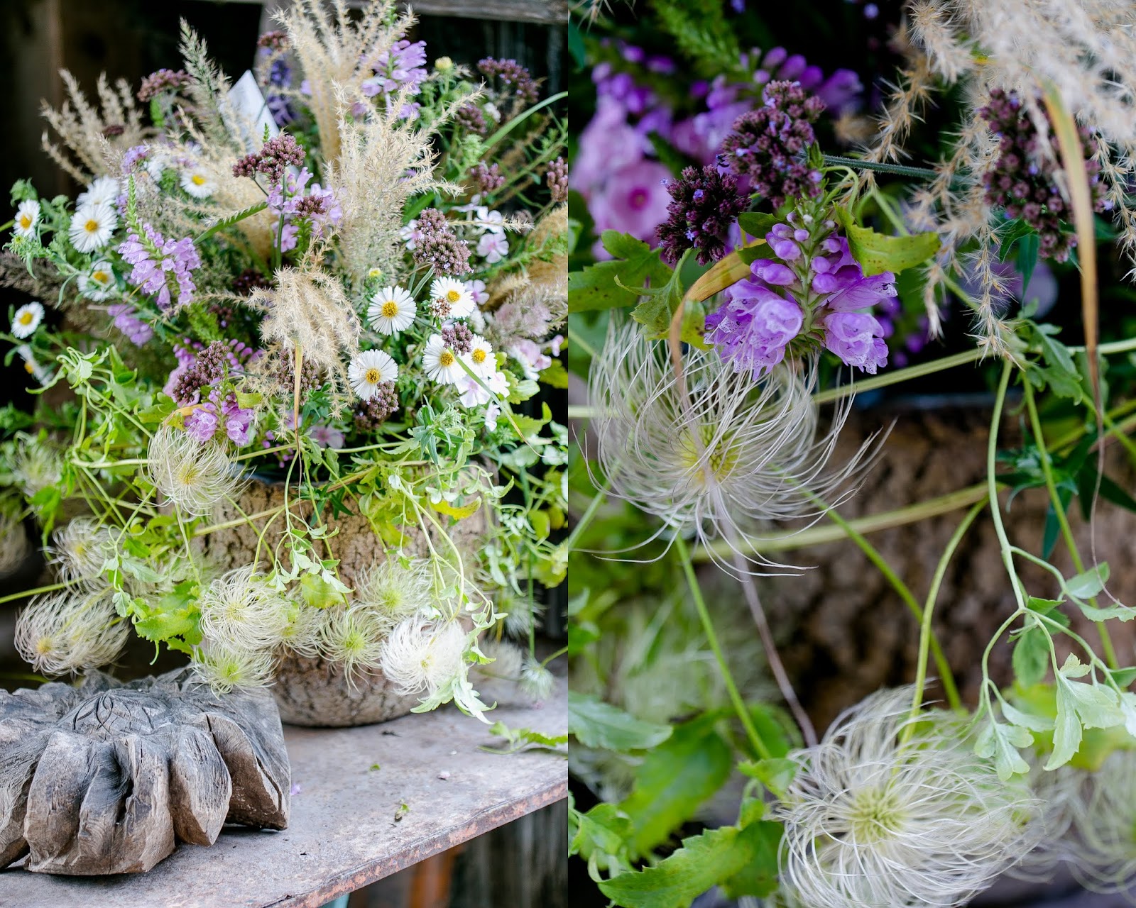 Und wie für den heutigen Friday Flowerday für Helga gemacht, standen überall die herrlichsten Sträuße in alten Vasen und Gefäßen, oder in alten Blechdosen …ganz im Stil von Ingrid Carozzi ♥