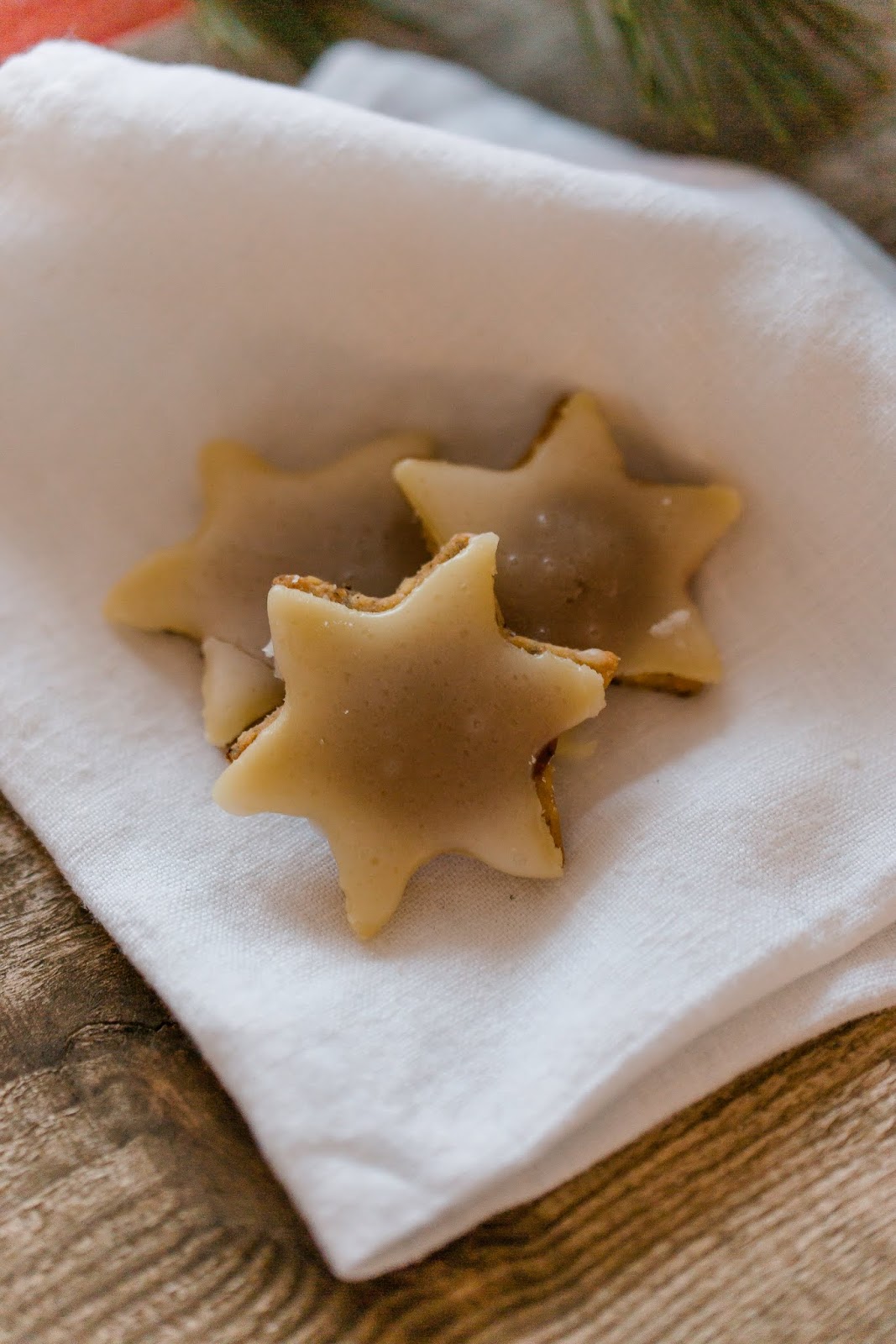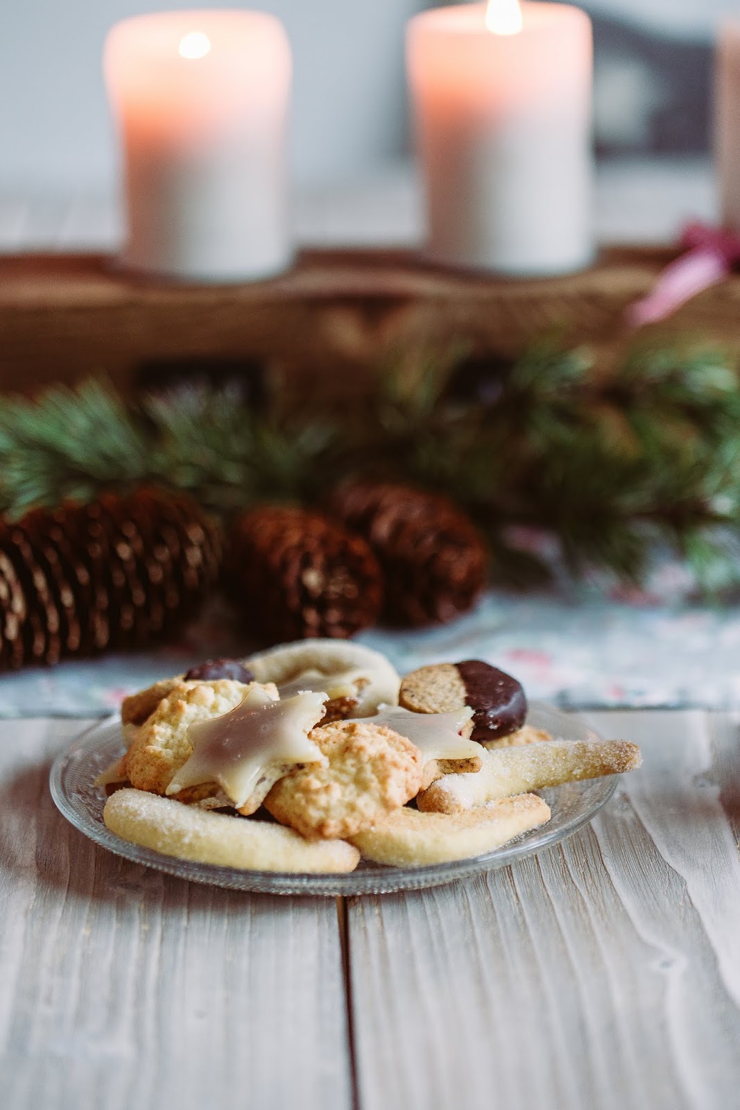 Auf dem Tisch siehst du auch gleich den Plätzchenteller stehen, das Kokosbusserlnrezept gab es hier schon und die Marzipansterne gab es hier schon.