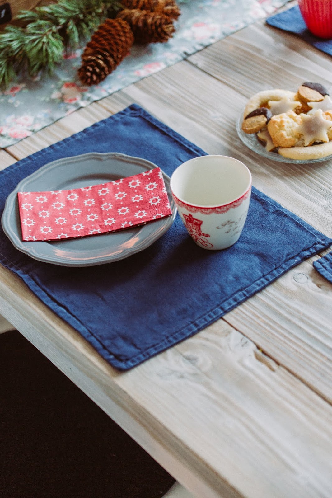 Ich habe in diesem Jahr auch einen blauen Tischläufer ( zu sehen am Freitag ). Anheimelnd schaut's aus!