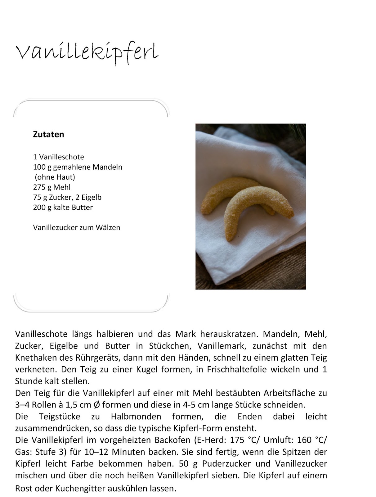 Das Vanillekipferlrezept Habe ich ebenfalls für dich.