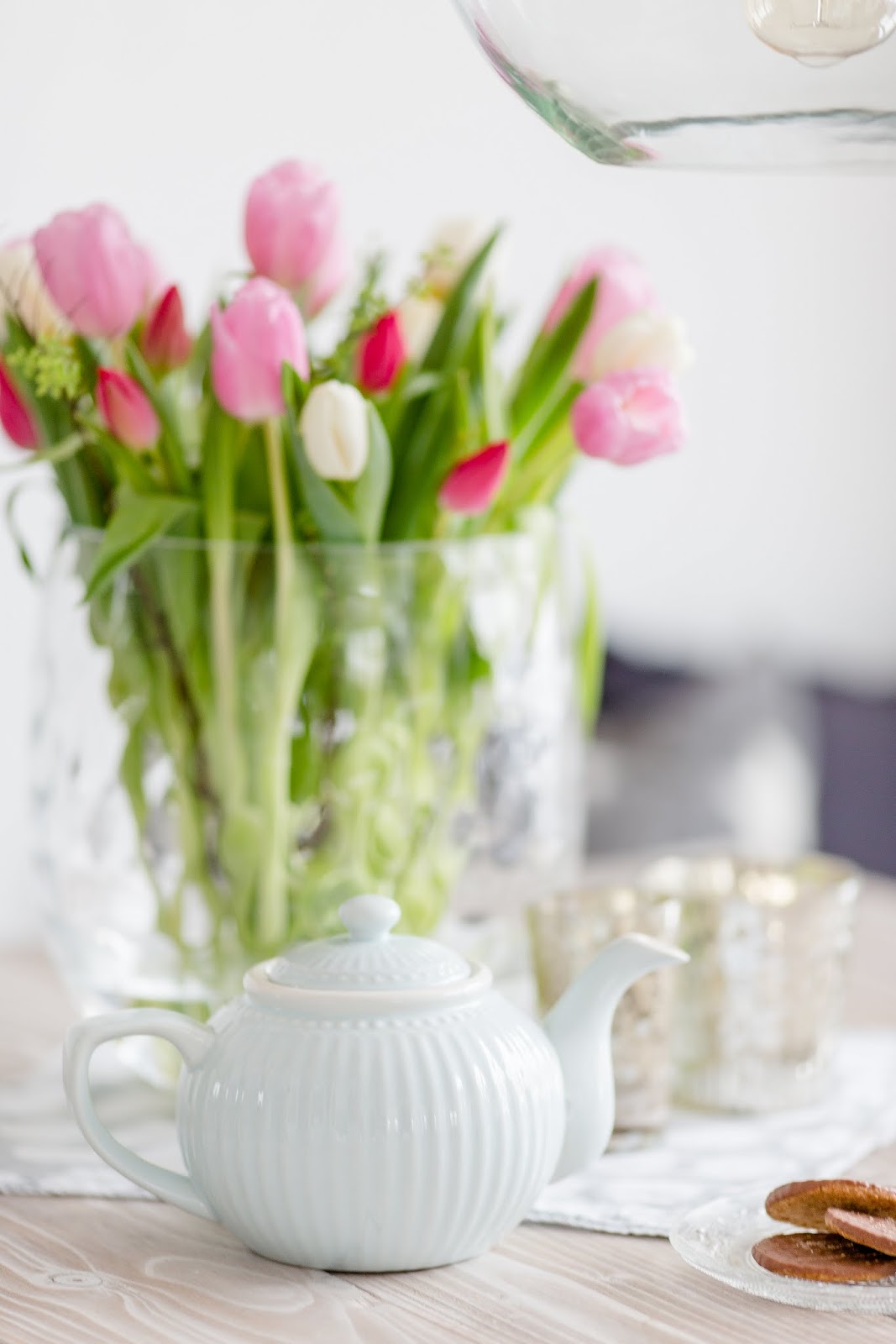 dein Tulpenstrauß ist ja wunderschön! Ich habe die selbe Teekanne zu Weihnachten bekommen :))!