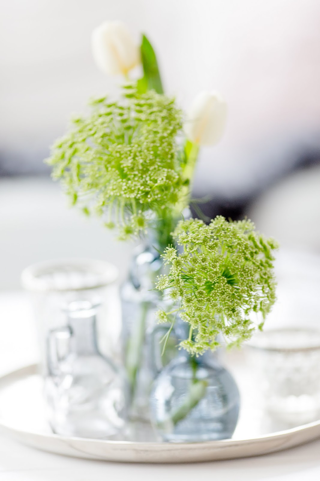 Die Ranunkeln auf dem Wohnzimmertisch sind leider verblüht und so habe ich sie durch ein paar übrig gebliebene Tulpen kombiniert mit wilder Möhre ersetzt…..freue ich mich, bis ich mich wieder frei im Garten bedienen kann! ♥