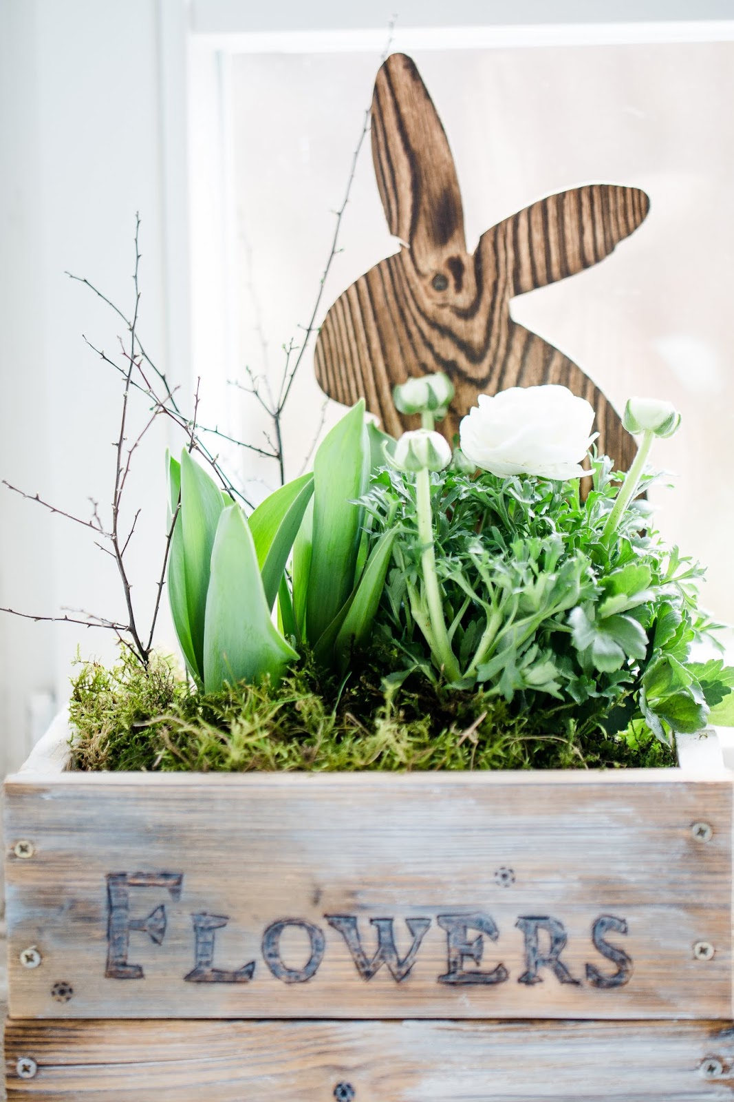 Mit Moos überdecken, vielleicht ein paar Äste dazustecken und ausdekorieren….. mit Hasen, Federn oder Eiern…..der Holzhase ist vom letzten Jahr, das DIY dazu findest du hier ( klick)