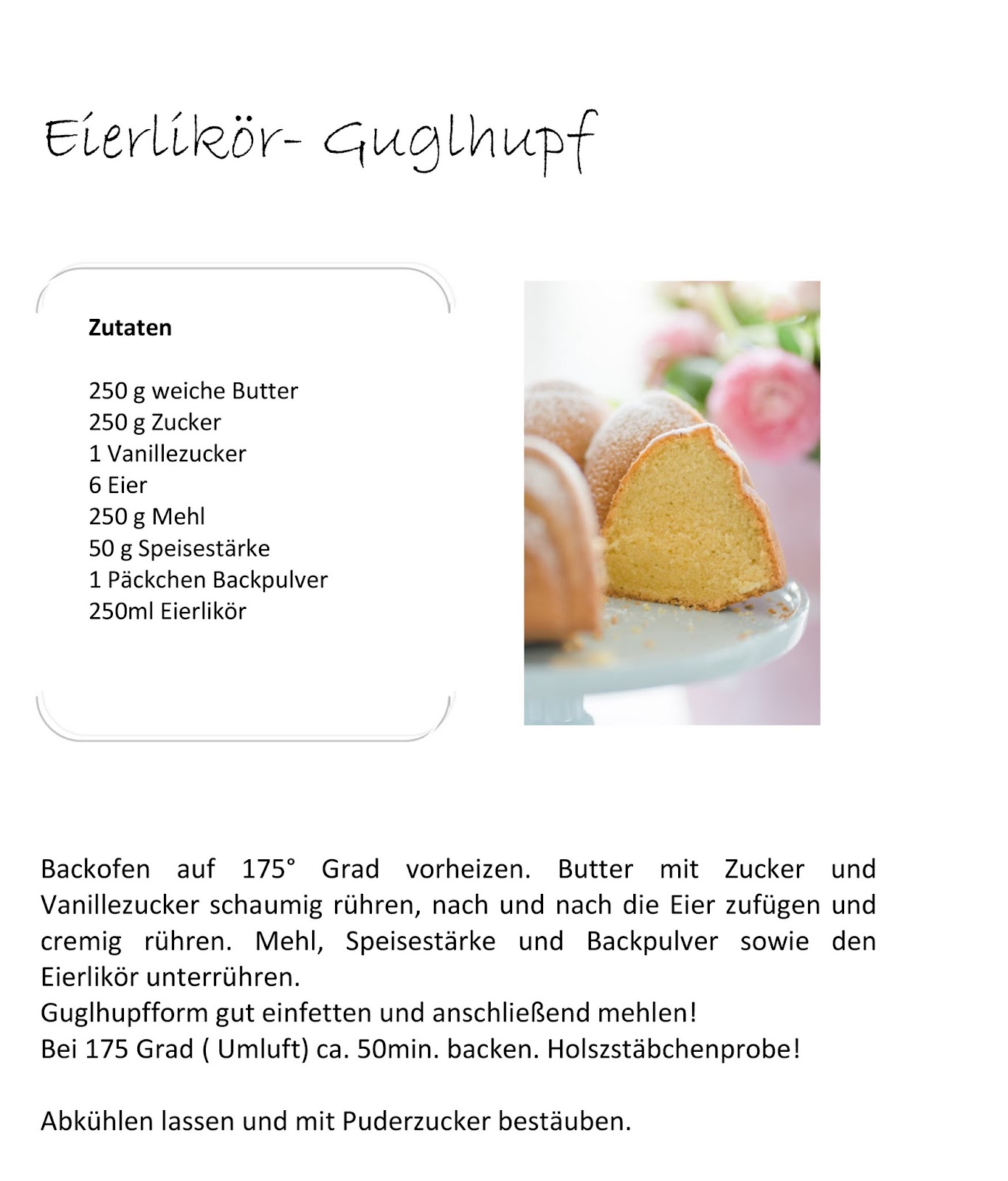 So jetzt aber aufgepasst….. hier kommt ein oberleckerer Guglhupf, wahrscheinlich das beste Rührkuchenrezept ever, jedenfalls von mir! Dieser oberfluffige Kuchen mit diesem genialen Eierlikörgeschmack schwindet hier in atemberaubender Geschwindigkeit…. und wird… ähm immerhin! von zwei Leuten gegessen :)) Was habe ich dir von reduziertem Zucker und…..lalala… Bikinifigur erzählt? Vergiss es!! Jedenfalls mal für heute…lach…..Wer jetzt sagt….och, Eierlikör ist nicht so meins…. taste it! Du wirst diesen Guglhupf lieben!! ♥