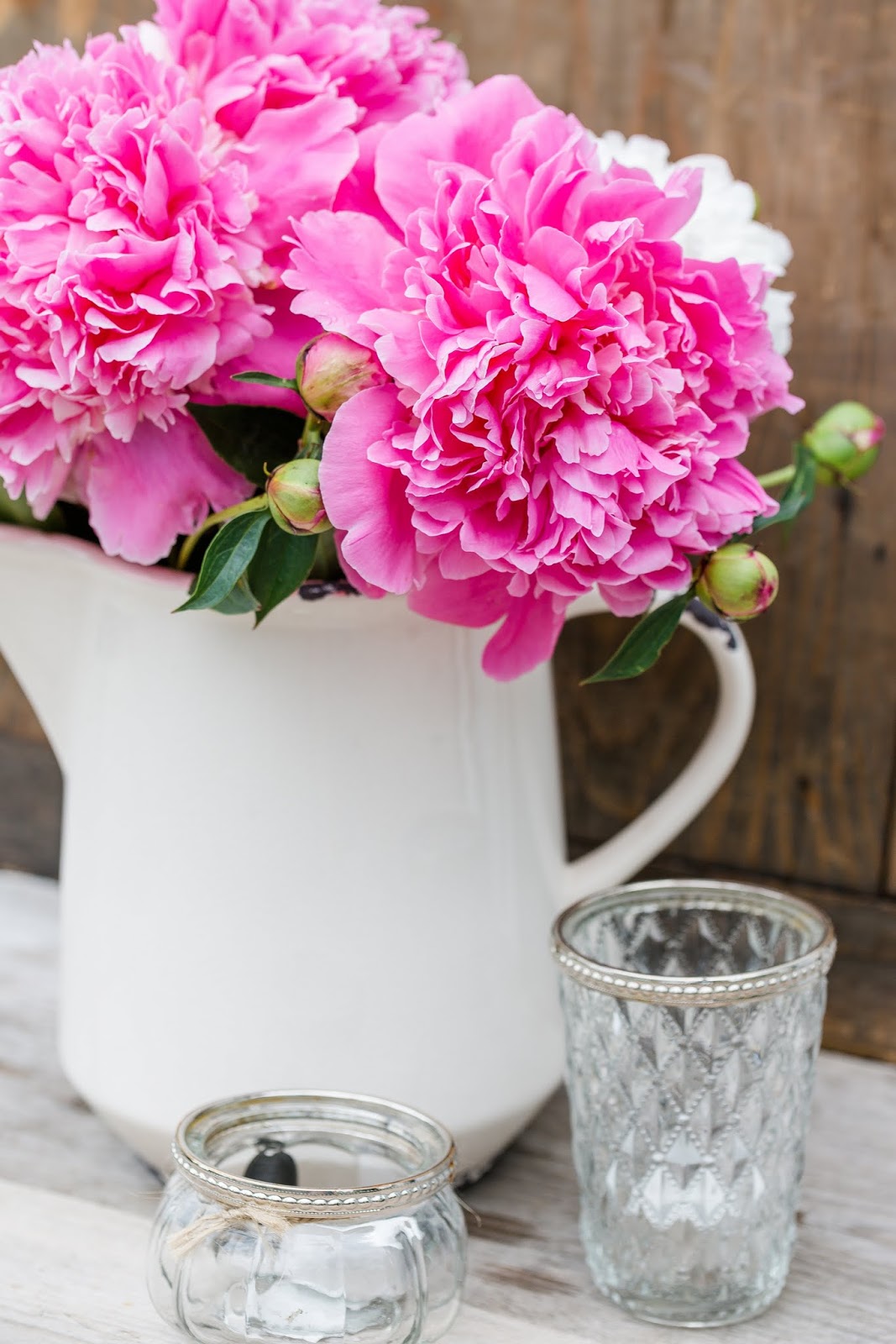 Du hast ein Händchen dafür, Blumen und passende Gefäße zusammen zu bringen, das es stimmig ist! Toll, dieser Krug zu den Pfingstrosen. Da wird der Bezug zum Bauerngarten wieder ganz deutlich.