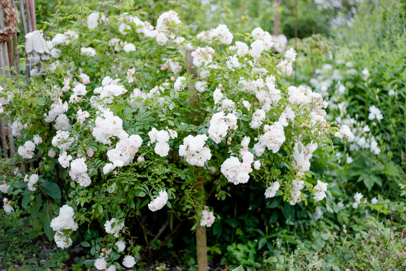 Mozarts Lady ist ja eine hübsche. Die kannte ich noch gar nicht. Mozart ist hier gerade aufgeblüht. Felicité Parmentier steht auch gerade in voller Blüte. Ich muss jedes mal anhalten und an ihr schnuppern. Sie duftet einfach zu schön.